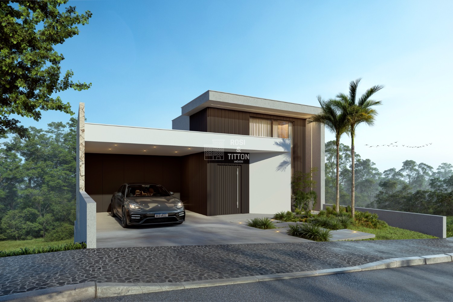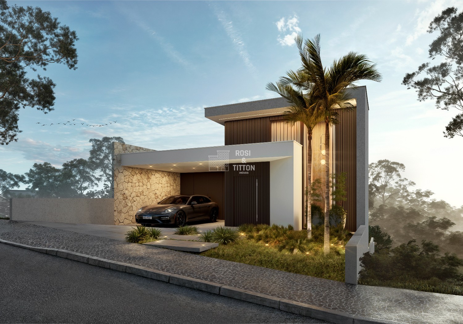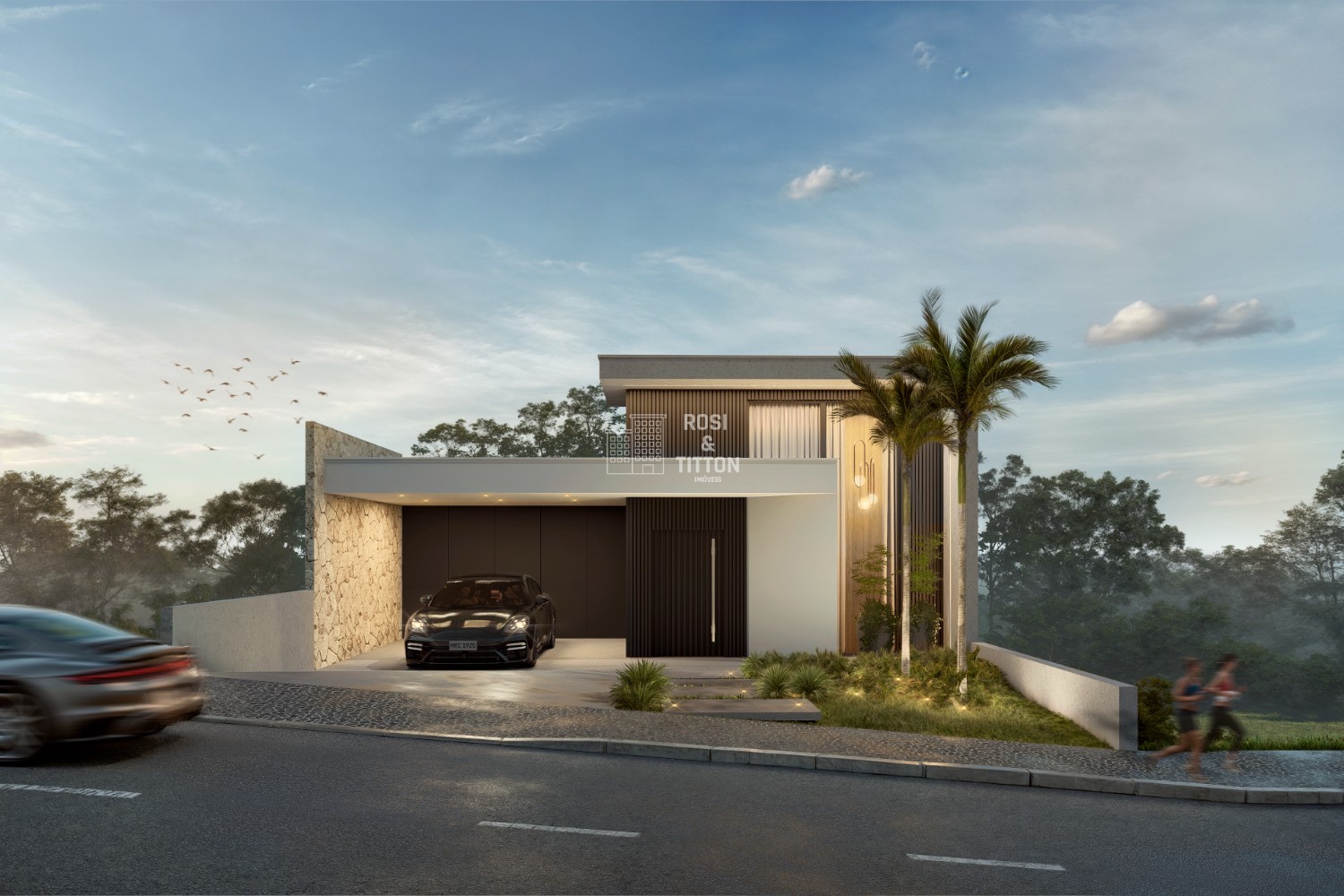 FACHADA COM DETALHES EM REVESTIMENTO DE PEDRA NATURAL