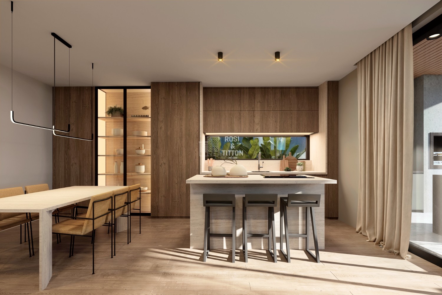 ÁREA GOURMET ABERTA, COM REVESTIMENTO DE TETO VINÍLICO AMADEIRADO